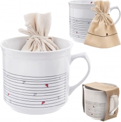 În pachet găsiți și un săculeț practic din bumbac de culoare bej, cu inimioară – ideal pentru ceai vrac, plante sau ca ambalaj cadou. Cana este ușor de întreținut, potrivită pentru mașina de spălat vase și cuptorul cu microunde; săculețul se poate spăla la 30 °C.