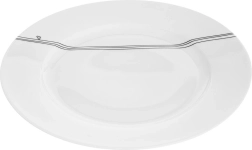 Farfurie elegantă din porțelan, cu diametrul de 27 cm, în culoare albă, cu un motiv delicat de linii și inimă, este o alegere excelentă atât pentru fiecare zi, cât și pentru mesele festive. Utilizare universală, design clasic și întreținere ușoară o transformă într-un accesoriu practic pentru orice gospodărie.