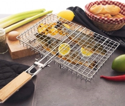 Acest coș de grătar închis este ideal pentru gătire uniformă a bucăților mici și mari fără riscul de a cădea prin grătarul clasic. Construcția din oțel cromat este durabilă, se curăță ușor și permite circulația liberă a căldurii și a fumului pentru o aromă intensă a preparatelor la grătar.