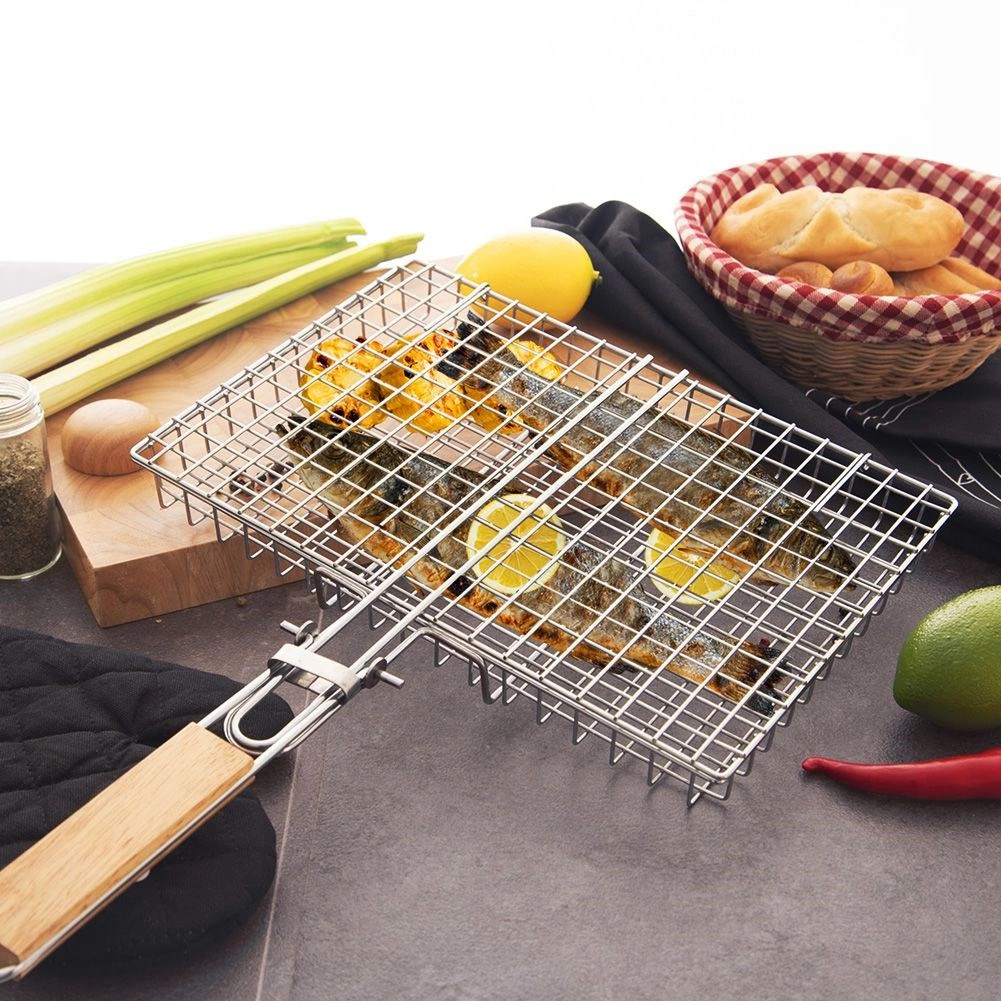 Plasa deasă previne căderea bucăților mici și asigură o gătire uniformă cu circulația căldurii și a fumului.