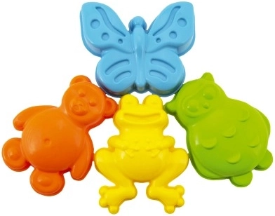 Acest set de 4 forme din plastic de calitate, în formă de animăluțe drăguțe, dezvoltă creativitatea copiilor și motricitatea fină. Datorită culorilor vii și formelor plăcute, copiii pot răsturna ușor figurine frumoase din nisip sau nisip kinetic.