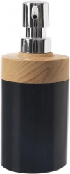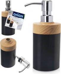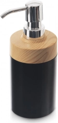 Acest dozator stilat combină negrul mat modern cu decorul natural de lemn și o pompă lucioasă. Este potrivit pentru săpun lichid, dezinfectant și detergent pentru vase. Datorită capacului simplu cu filet, reumplerea este rapidă și curată, economisind timp și bani la achiziționarea unor rezerve mai mari și mai ecologice.