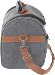 Pentru confort maxim, geanta are bretea de umăr detașabilă și reglabilă, mâner solid pentru transport rapid și buzunar frontal cu închidere pentru mărunțișuri. Fermoarul cu două sensuri permite acces rapid la conținut. Combinația stilată de gri cu benzi maro se potrivește atât în oraș, cât și în natură.