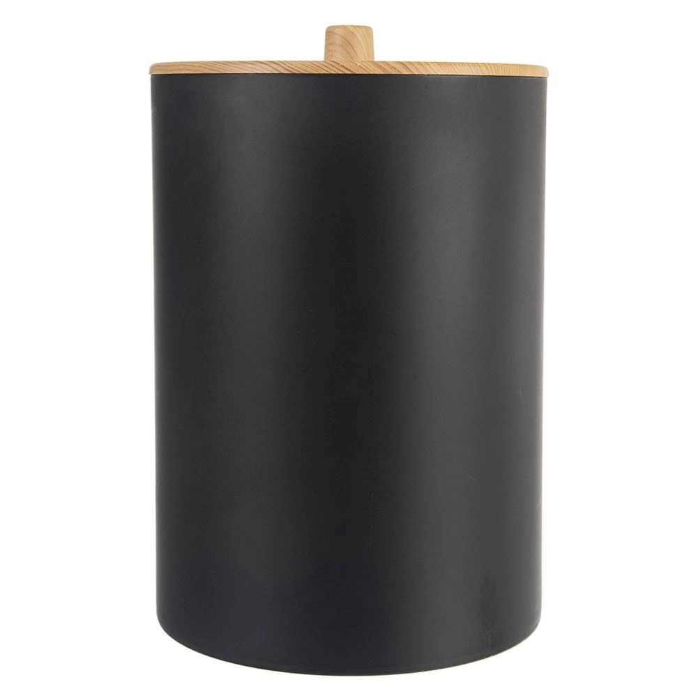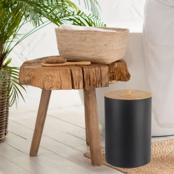 Aspectul minimalist negru, cu capac în decor de lemn, are un efect decorativ și se potrivește ușor în diferite stiluri de interior. Datorită dimensiunilor optime, puteți plasa coșul pe podea, pe blat sau îl puteți ascunde în dulap.