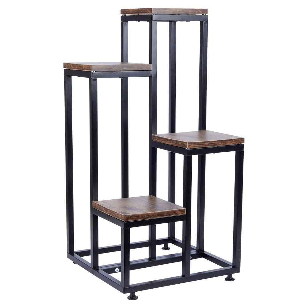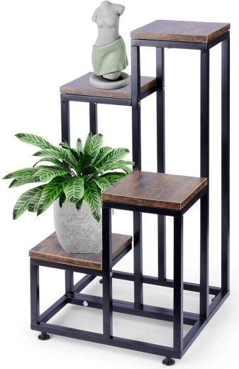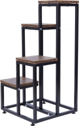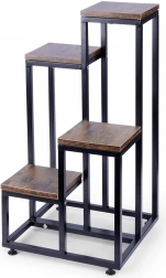 Aduceți acasă și la birou o atmosferă industrială modernă. Suportul pentru flori pe patru niveluri, din metal negru, cu rafturi din MDF de calitate în decor de lemn închis, oferă dimensiuni compacte și stabilitate ridicată. Se potrivește excelent în living, bucătărie, sufragerie, hol, dar și în birou sau sală de așteptare.