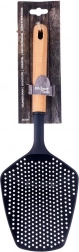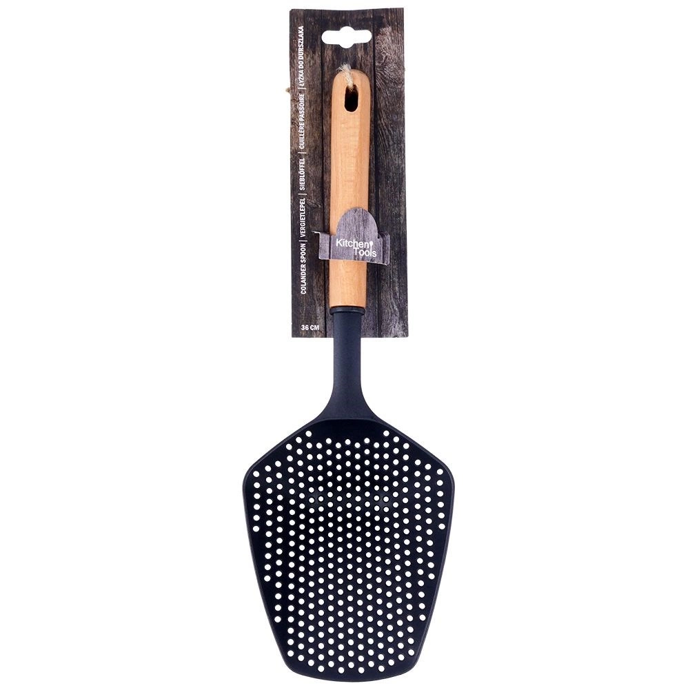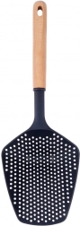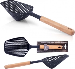 Această spumieră/lingură cu strecurătoare de calitate este ideală pentru gătitul zilnic. Datorită capului din nylon, este sigură pentru suprafețe teflonate, granit și ceramică și nu zgârie nici vasele din sticlă. Mânerul din lemn, cu formă ergonomică, asigură un priză confortabilă și sigură, iar orificiul din capăt permite agățarea practică pe bara de bucătărie.