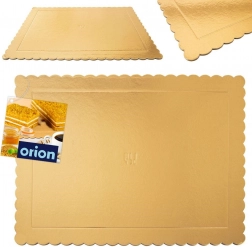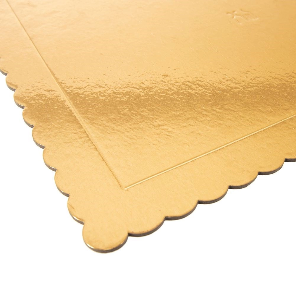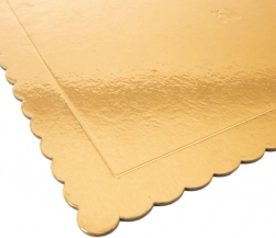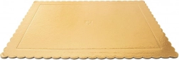 Alegere elegantă și practică pentru coacere acasă sau profesională. Suportul dreptunghiular cu finisaj auriu și margine decorativă zimțată evidențiază aspectul oricărui tort sau desert. Este realizat din carton gros, foarte rigid, care nu se deformează și susține fiabil chiar și deserturi mai mari și etajate.
