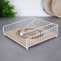 Acest suport alb din metal, cu detaliu din lemn, este conceput pentru dozarea comodă a șervețelelor și fixarea lor perfectă datorită brațului cu greutate. Potrivit pentru bucătărie, sufragerie și pentru mesele în aer liber – în grădină, pe terasă sau pe balcon.