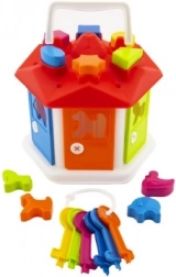 Caseta de sortare în formă de căsuță este adaptată pentru cei mai mici, pentru a învăța într-un mod distractiv recunoașterea diferitelor forme geometrice și culori. Este alcătuită dintr-o căsuță cu deschideri pe acoperiș pentru introducerea formelor din plastic. Ușile colorate se deschid cu ajutorul cheilor, oferind copiilor un nivel suplimentar de interacțiune și susținând răbdarea și rezolvarea problemelor.