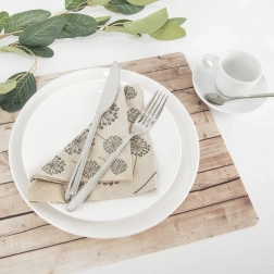 Suport de masă practic și decorativ, care creează o aranjare unitară și estetică pentru farfurii și tacâmuri. Decorul realist de lemn oferă mesei un aspect primitor și, în același timp, asigură protecție fiabilă a suprafeței împotriva petelor, căldurii și micilor deteriorări mecanice.