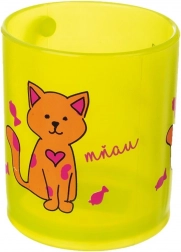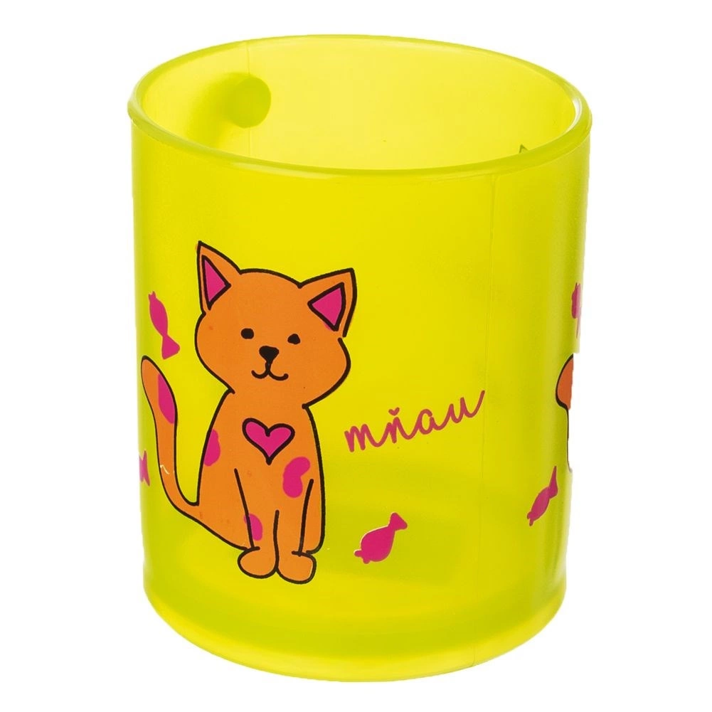 Cană ușoară și rezistentă pentru copii, cu toartă, volum 260 ml, în culoare galbenă semi-transparentă, decorată cu pisicuță. Ideală pentru ceai, apă, suc și cacao. Potrivită pentru mașina de spălat vase și cuptorul cu microunde, fără BPA, pentru copii de la 3 ani. Material rezistent, toartă confortabilă și utilizare sigură în fiecare zi.