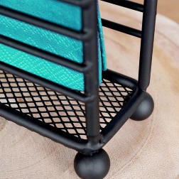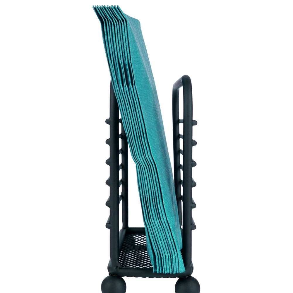 Suportul metalic pentru șervețele, în finisaj negru mat, este conceput pentru confort zilnic și servire elegantă. Dimensiunile compacte de 11,5 × 4,5 × 10 cm economisesc spațiu, iar construcția rezistentă păstrează șervețelele verticale și ordonate.