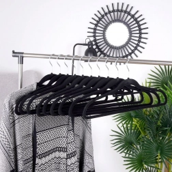 Umerașele au decupaje pe umeri și o bară inferioară, astfel încât puteți agăța fără probleme tricouri, sacouri, rochii cu bretele subțiri, fuste, pantaloni și eșarfe. Catifeaua este blândă cu textilele și ajută la prevenirea alunecării, șifonării și urmelor de presiune.