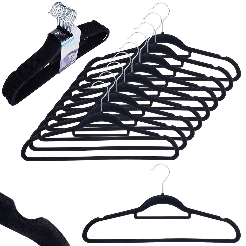 Set practic de 10 umerașe subțiri, cu suprafață fină din catifea, care ajută la menținerea ordinii în dulap și economisesc spațiu. Finisajul antiderapant păstrează hainele în siguranță la locul lor, în timp ce cârligul metalic rotativ facilitează agățarea în orice direcție.