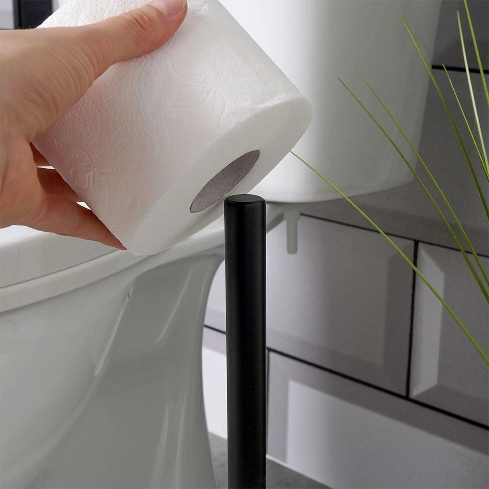 Tija verticală poate găzdui până la cinci role de rezervă de hârtie igienică, astfel încât stocul este mereu pregătit și ușor de observat.