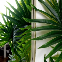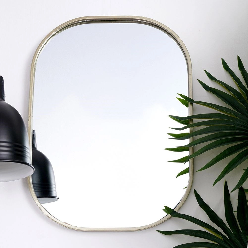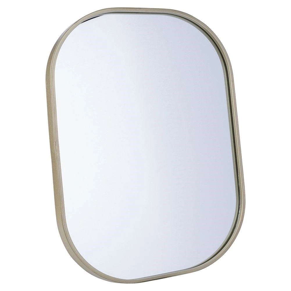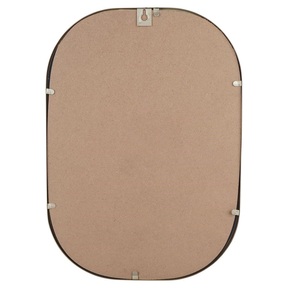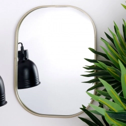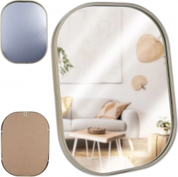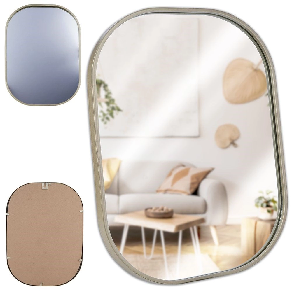Oglinda ovală de design, în nuanță de auriu șampanie, se remarcă drept accesoriu practic și estetic. Bagheta metalică a ramei are un aspect elegant și atemporal, protejează marginile și asigură o durată de viață îndelungată. Oglinda poate fi ușor agățată pe perete cu ajutorul sistemului de prindere pregătit, evidențiind atmosfera încăperii și mărind-o optic prin luminozitate și amploare.
