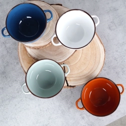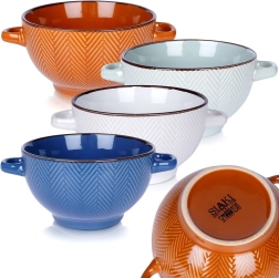 Setul de patru boluri cu mânere practice face mai ușoară servirea supelor fierbinți, a tocanelor și a gustărilor. Fiecare bol are un volum de 620 ml și dimensiuni de 18 × 14 × 8 cm, oferind spațiu generos pentru porții consistente. Ceramica de calitate cu glazură lucioasă este rezistentă și ușor de întreținut.