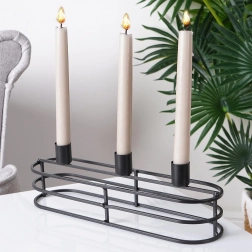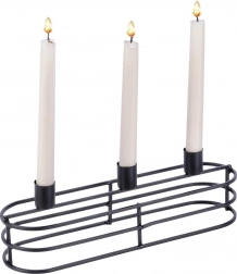 Trei suporturi cilindrice țin în siguranță lumânările într-un singur rând. Ideal pentru lumânări cu diametrul de până la 2 cm și pentru aranjamente de masă spectaculoase.