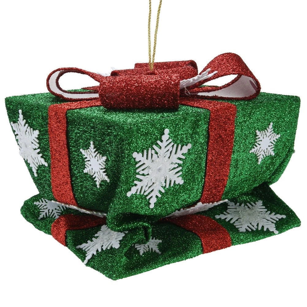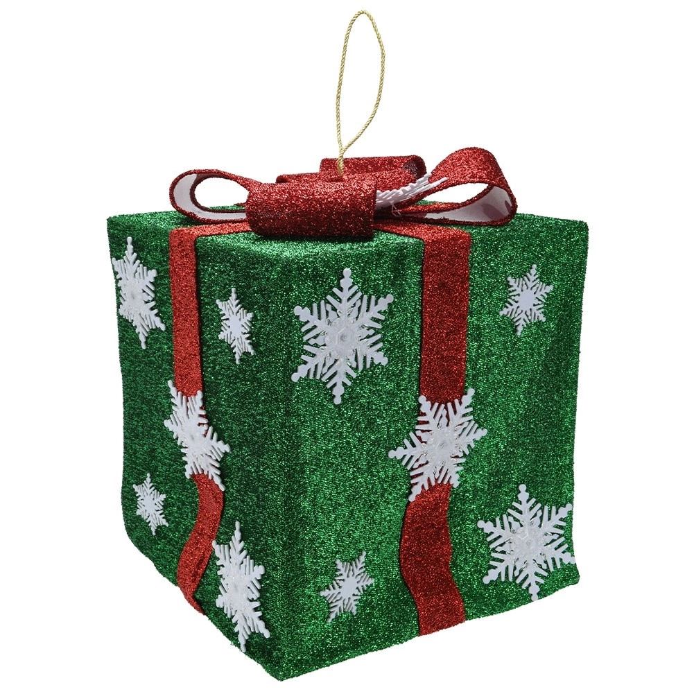 Suprafața verde sclipitoare cu fulgi de zăpadă și fundă roșie creează un accent atrăgător atât în casă, cât și în grădină.