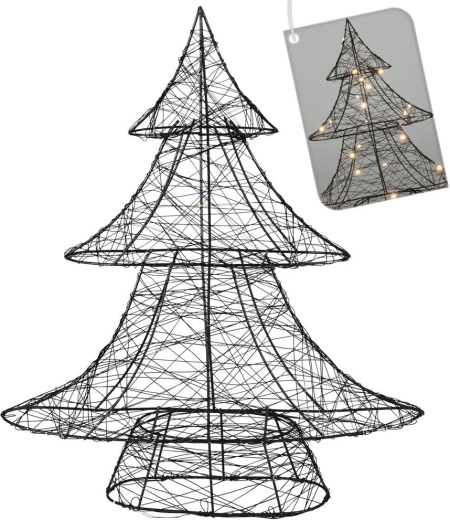 Brad de Crăciun metalic, de design, în culoare neagră, cu fire fin împletite și lumină LED alb cald, creează în casa dvs. o atmosferă plăcută și festivă. Datorită dimensiunii compacte de 40 cm, se potrivește în living, dormitor sau birou.