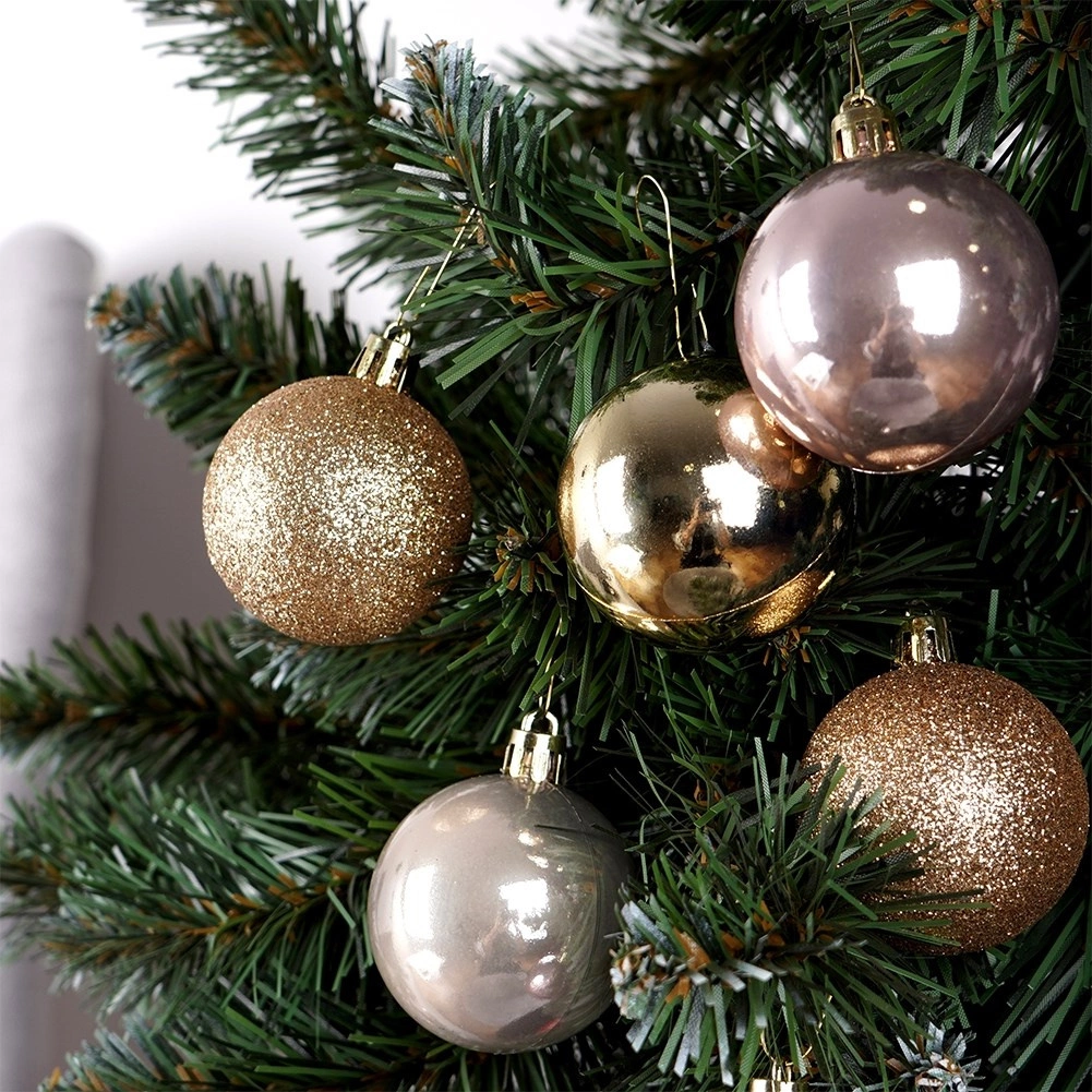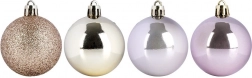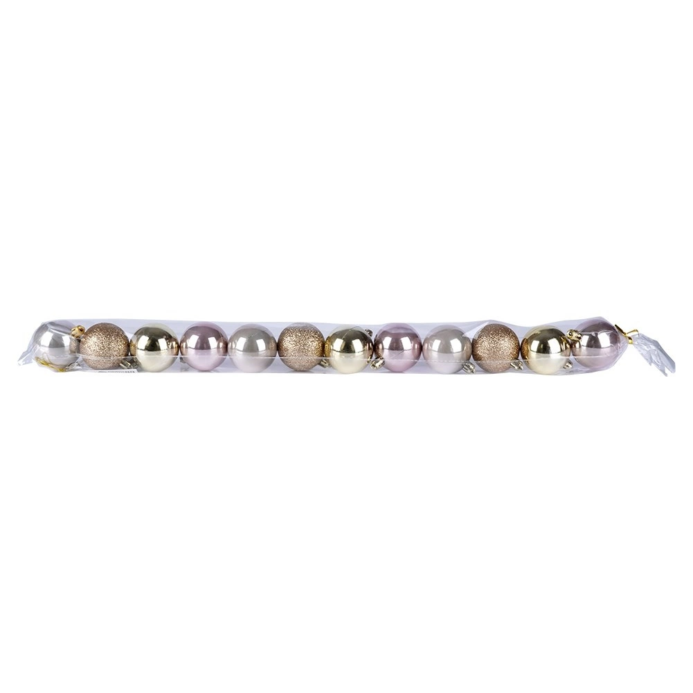 Cu acest set stilat de globuri creezi cu ușurință o atmosferă de Crăciun magică în brad, coroane și aranjamente festive. Paleta roz‑aurie și mixul de finisaje (luciu și sclipire) asigură un aspect modern și elegant, potrivit atât interioarelor clasice, cât și celor contemporane.