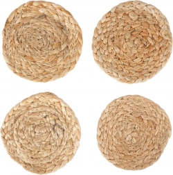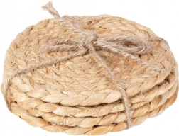 Suporturi stilate, ecologice și rezistente din iută naturală, cu diametrul de 10 cm, în set de 4 bucăți. Protejează perfect masa de căldură, umiditate și zgârieturi, fiind totodată o frumoasă decorațiune în stil boho. Potrivite pentru băuturi fierbinți și reci, ușoare și rezistente, cu textură naturală și utilizare universală în orice locuință.
