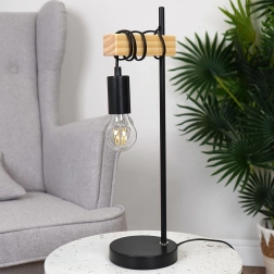 Această lampă de birou modernă, în negru mat, cu element din lemn, completează excelent interioarele în stil loft, scandinav și modern. Datorită combinației de metal și lemn natural, are un aspect elegant și atemporal, oferind totodată lumină ambientală și de lucru plăcută.