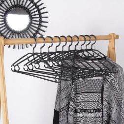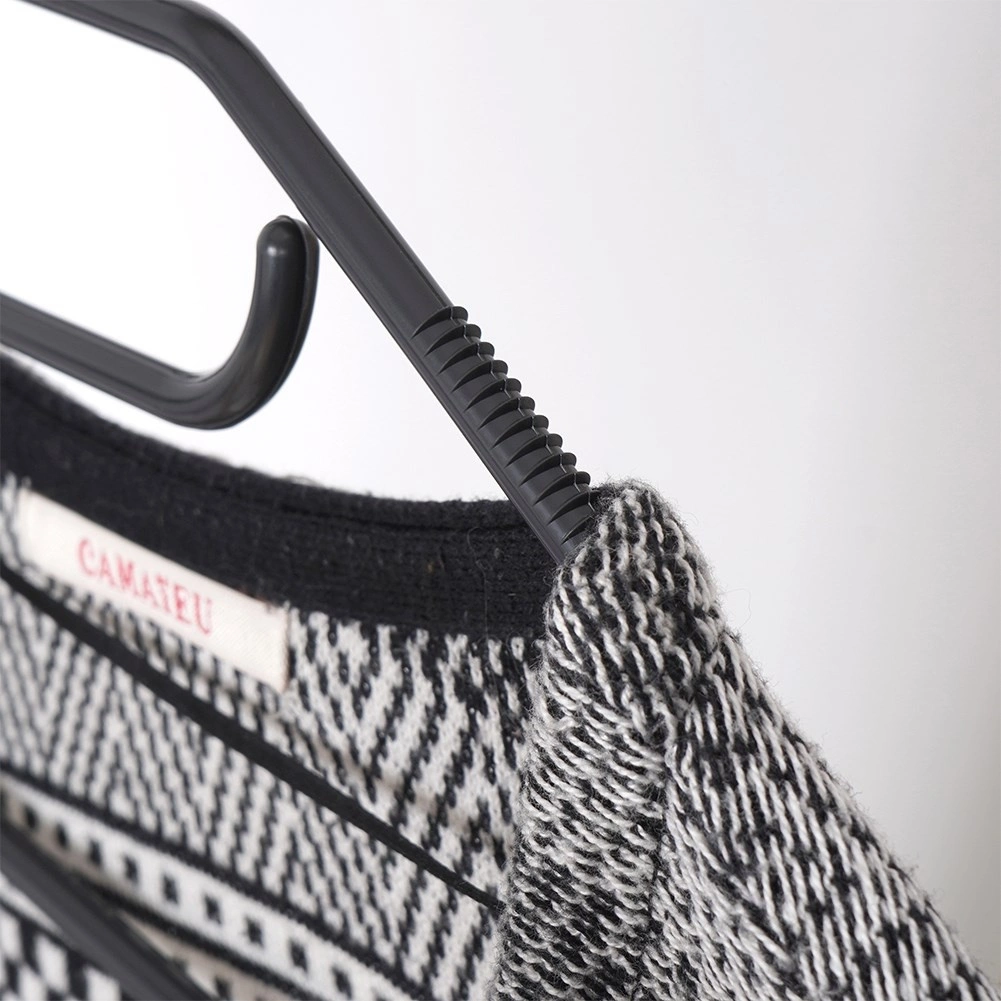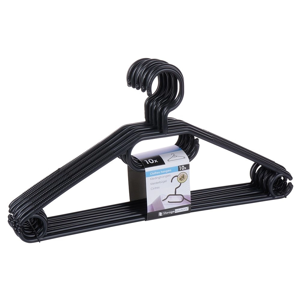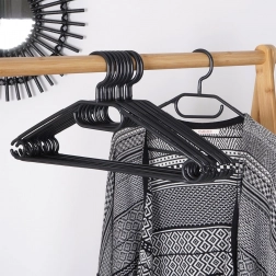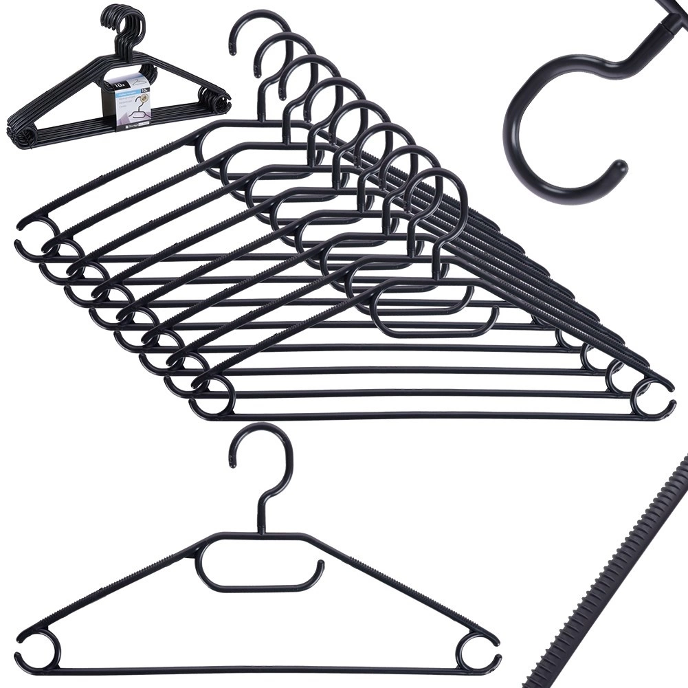 Păstrează-ți garderoba ordonată cu setul de 10 umerașe de calitate, în elegantul negru. Datorită cârligului rotativ le plasezi ușor în orice dulap, iar multiplele puncte de agățare îți permit să atârni cămăși, sacouri, fuste, pantaloni și accesorii precum eșarfe sau cravate.