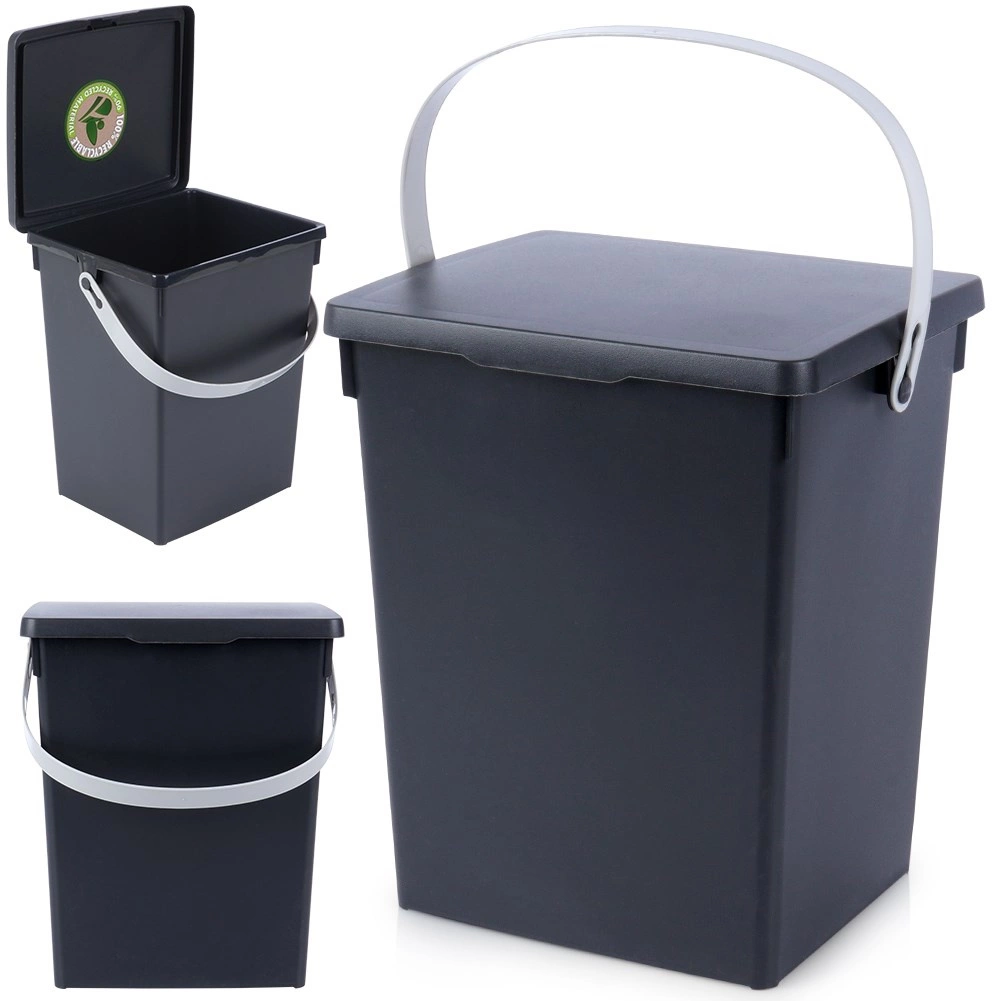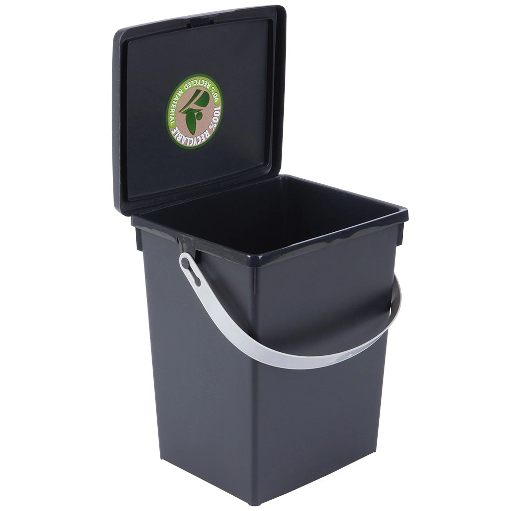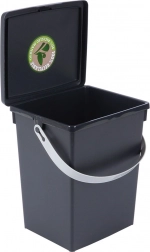 Capacul cu deschidere superioară protejează conținutul de umiditate și praf și, în același timp, previne răspândirea mirosurilor neplăcute – ideal pentru deșeuri sau compost.