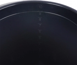 Scala de măsurare internă, din litru în litru, permite dozarea precisă a apei și a altor lichide fără a fi nevoie de un alt recipient gradat.
