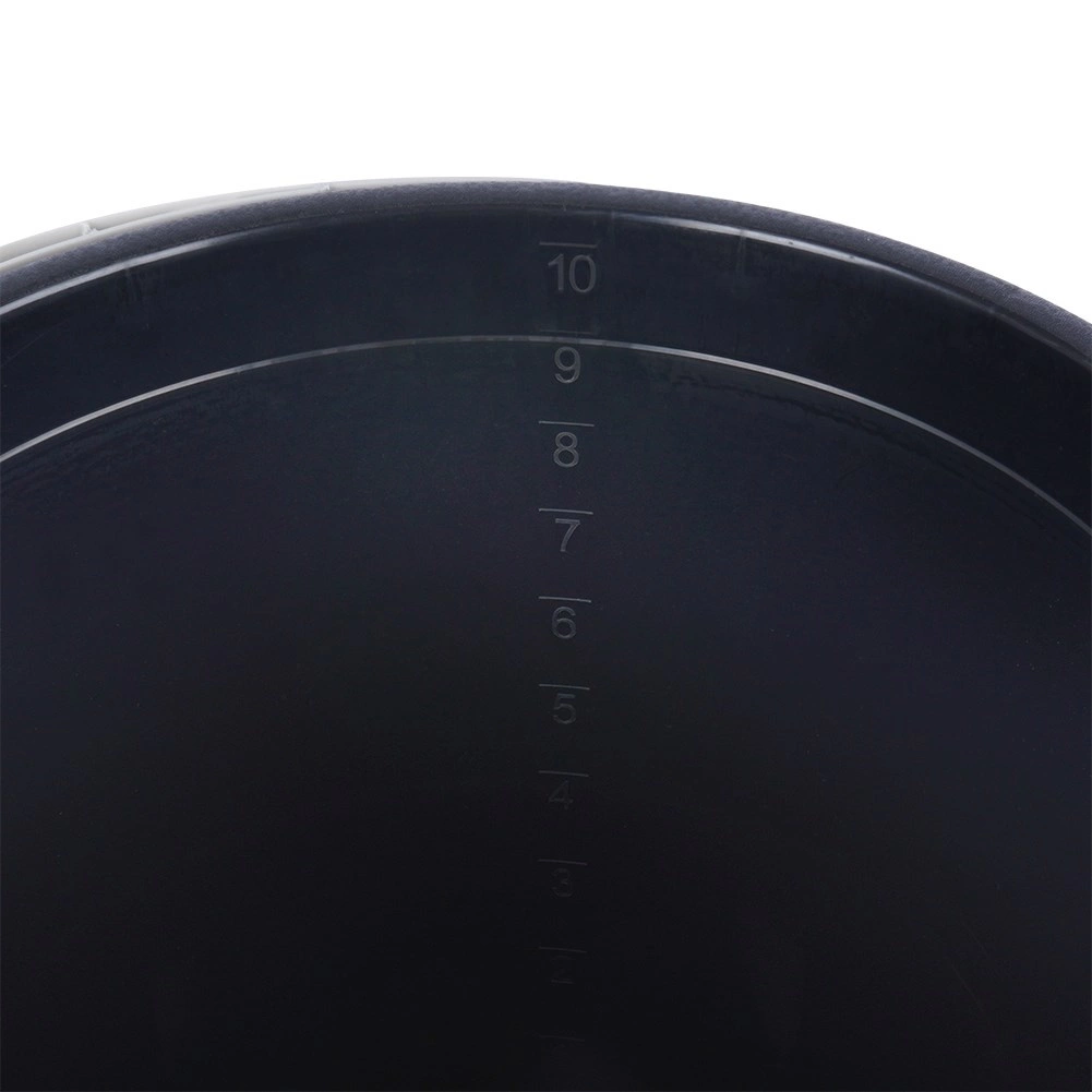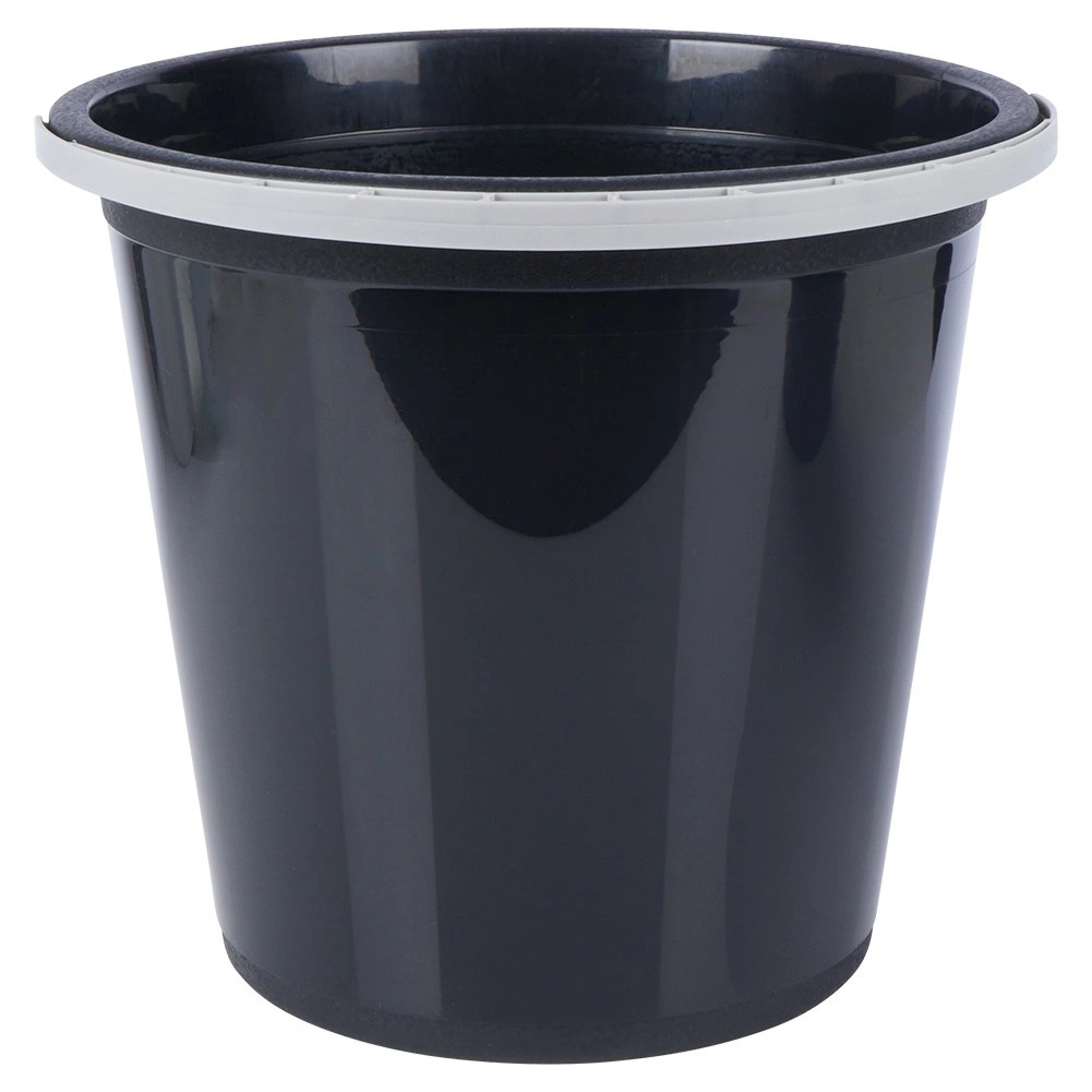 Găleata neagră universală, cu mâner ergonomic gri, face față lucrărilor zilnice în casă, grădină și garaj. Marginea lată permite umplerea și golirea ușoară, iar scala din litru în litru asigură măsurarea precisă a lichidelor. Construcția din plastic rezistent este totodată ușoară pentru transport comod.