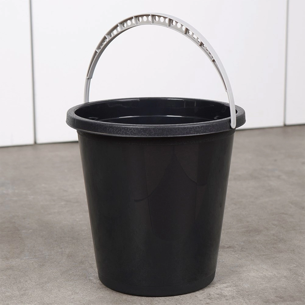 Găleată practică neagră, utilă la curățenie, spălat geamuri, udat, în garaj și pe șantier. Construcția ușoară, dar solidă, și mânerul gri confortabil asigură manevrare comodă și durată de viață îndelungată. Datorită designului universal, este potrivită pentru transportul și depozitarea apei, a detergenților, a uneltelor sau a materialelor vrac.