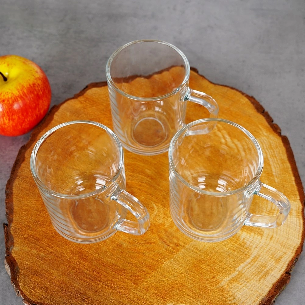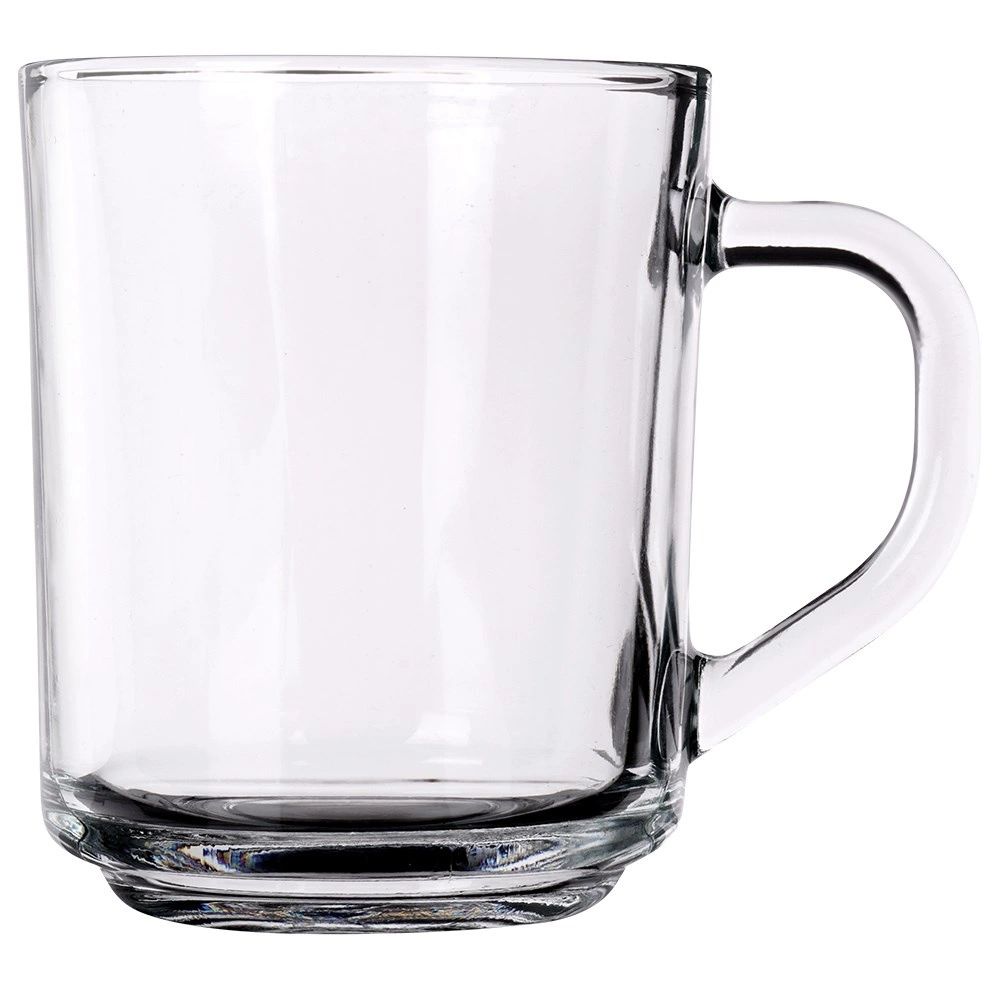 Căni elegante din sticlă, cu toartă solidă, ideale pentru servirea de cafea, ceai, apă, suc și alte băuturi. Sticla transparentă evidențiază culoarea băuturii, iar datorită formei cilindrice clasice, cănile se țin confortabil în mână și sunt plăcute la băut.