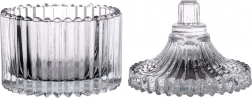 Zahărniță stilată din sticlă, cu capac, în dimensiuni compacte 6,5 × 9 cm și volum de 80 ml, o alegere excelentă pentru utilizarea zilnică și ocazii festive. Decorul striat adaugă o notă de eleganță vintage, iar sticla transparentă permite controlul conținutului.