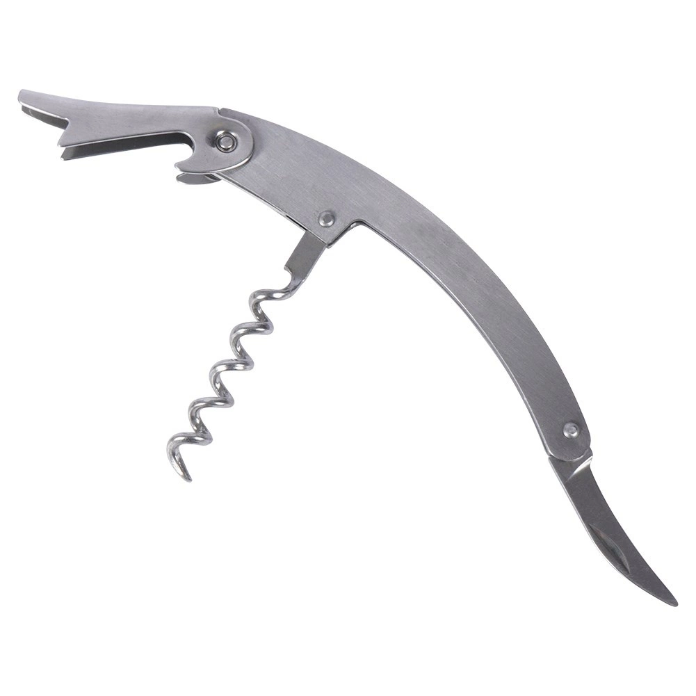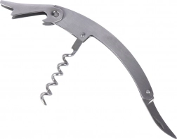 Tirbușon pliabil de chelner cu spirală, pârghie și cuțitaș pentru folie, care permite deschiderea rapidă și sigură a sticlelor și îndepărtarea capselor coroanei.