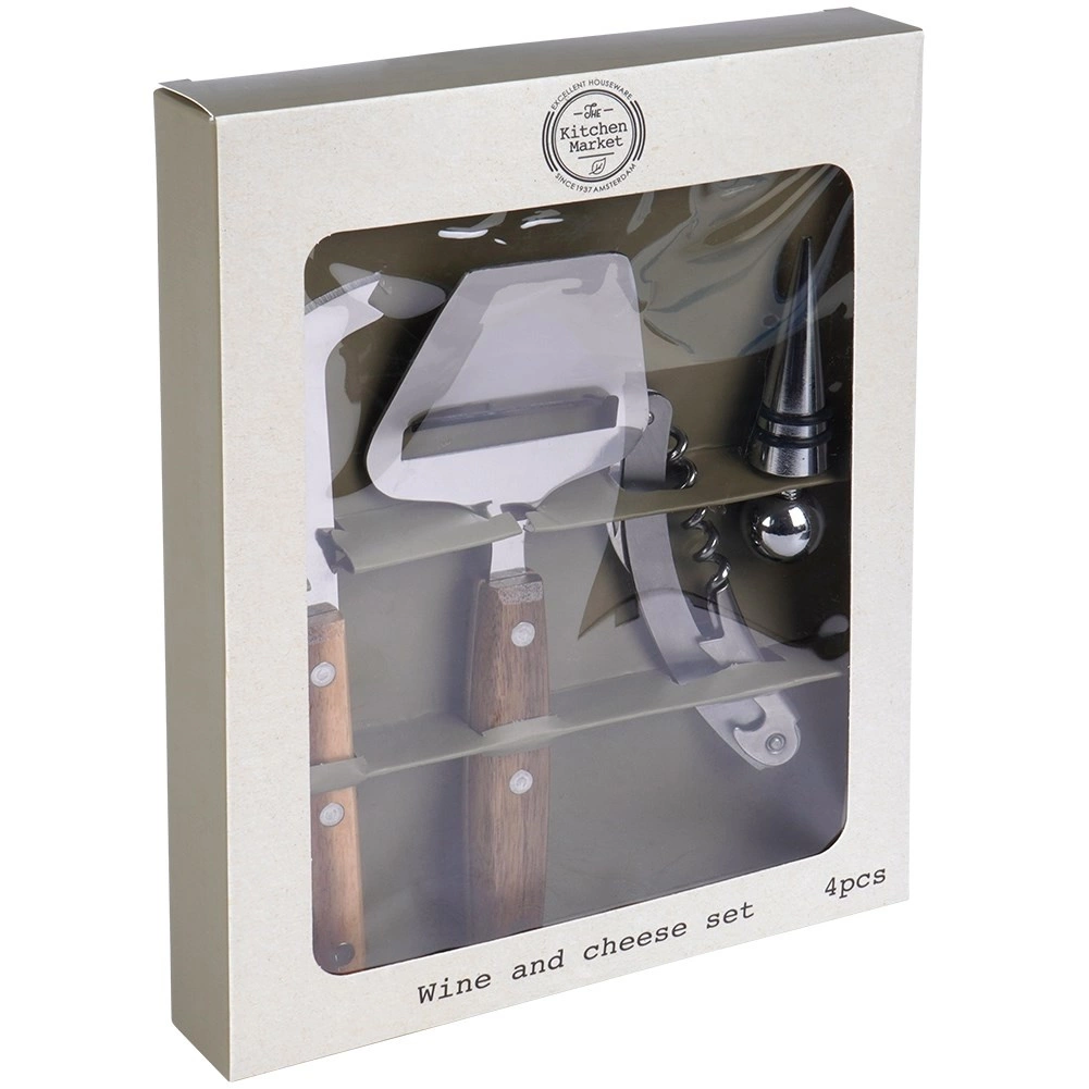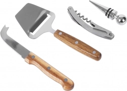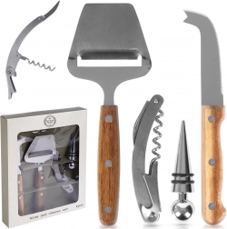 Acest set universal de accesorii pentru vin și brânzeturi îmbină calitatea, funcționalitatea și designul atemporal. Tirbușonul asigură deschiderea rapidă și sigură a vinului și îndepărtarea capselor, dopul păstrează prospețimea și aroma sticlelor deschise. Cuțitul și feliatorul permit tăierea precisă a brânzeturilor de la cele moi la cele tari.
