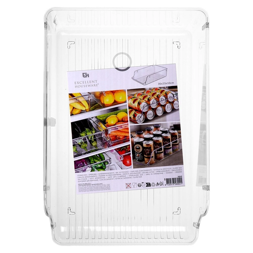 Faceți ordine în frigider și în cămară. Acest organizator transparent cu mânere integrate și muchie frontală joasă oferă acces rapid la alimentele depozitate, în timp ce fundul striat ajută la menținerea conținutului pe poziție. Plasticul robust este sigur pentru contactul cu alimentele și ușor de curățat.