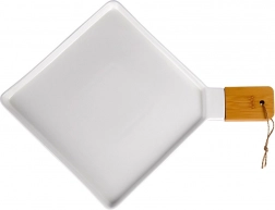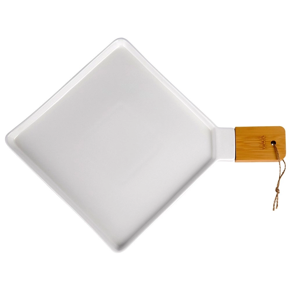 Farfuria de servire din porțelan TERRESTRIAL oferă o combinație de design modern și funcționalitate maximă. Suprafața pătrată cu margine înălțată menține preparatele în siguranță la locul lor, în timp ce mânerul ergonomic din bambus asigură transport confortabil și sigur din bucătărie până la masă. Perfectă pentru preparate reci și calde – de la brânzeturi și tapas la carne, fructe sau deserturi.