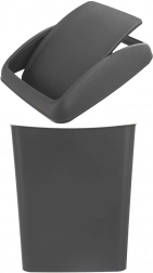 Acest coș practic cu capac basculant (tip balansoar) facilitează aruncarea deșeurilor mici fără contact direct. Volumul de 5 l și dimensiunile de 17,5 × 13 × 25 cm îl fac o alegere ideală pentru spații mai mici – pe podea, pe blatul de lucru sau în dulap. Suprafața mată, gri închis, are un aspect modern și se potrivește ușor cu diverse stiluri de interior.