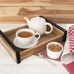 Tava dreptunghiulară din lemn de mango, în stil industrial LOFT, îmbină aspectul natural cu funcționalitatea. Este ideală pentru servirea cafelei, ceaiului, deserturilor sau micului dejun la pat, precum și pentru prezentări stilate la petreceri și evenimente de catering. Datorită marginilor înălțate și mânerelor metalice solide, se transportă confortabil și în siguranță.