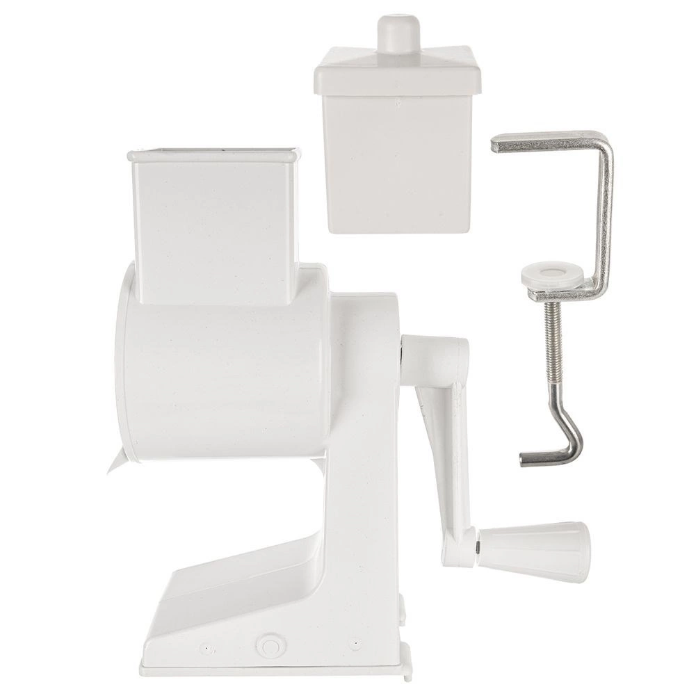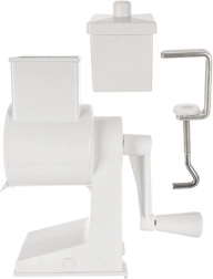 Răzătoare rotativă manuală practică, cu manivelă și tambur din inox interschimbabil, pentru răzuire și măcinare ușoară. Datorită prinderii ferme de masă, lucrul este stabil, sigur și fără alunecare. Ideală pentru pesmet de casă, nuci, ciocolată, brânzeturi, legume și fructe.