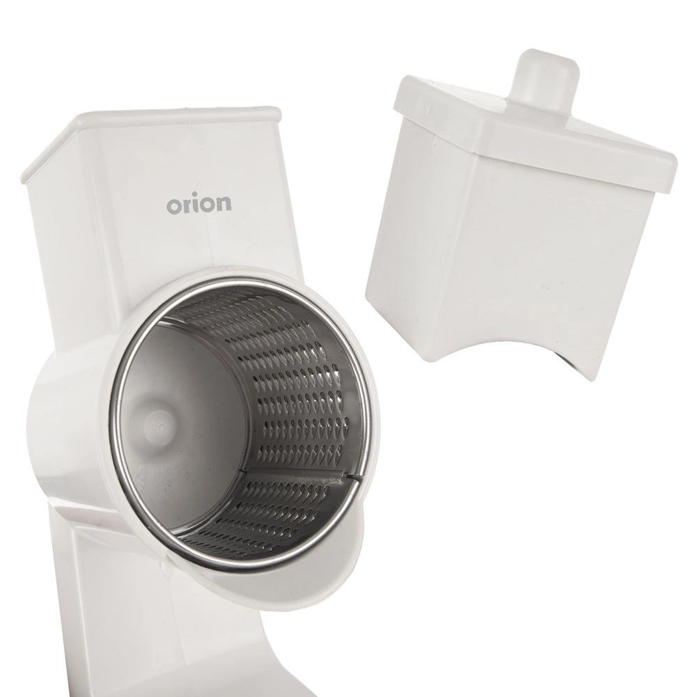 Descoperiți o răzătoare manuală fiabilă, care va deveni un ajutor de neînlocuit în orice bucătărie. Corpul din plastic rezistent, alb, și tamburul din inox garantează durabilitate și întreținere ușoară. Datorită prinderii cu șurub pe blatul de lucru (max. 5,5 cm), dispozitivul rămâne perfect stabil în timpul utilizării.