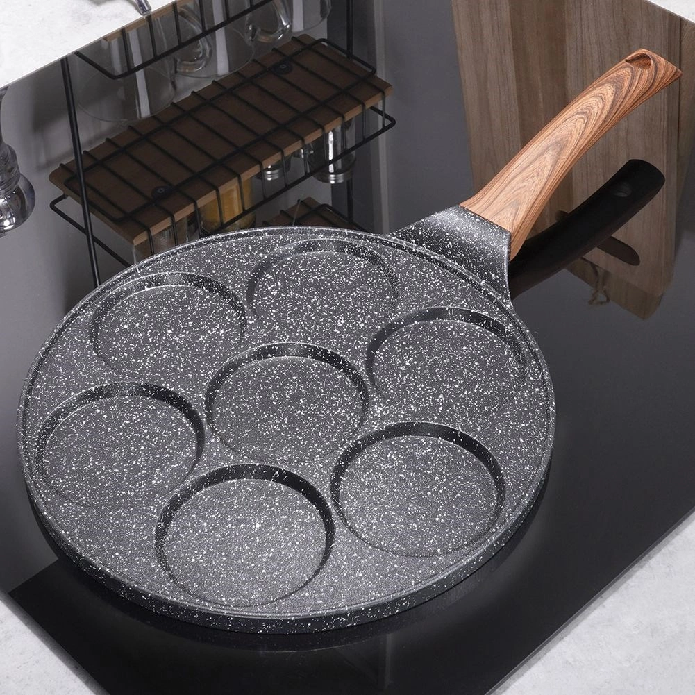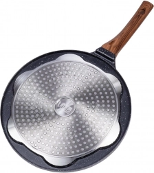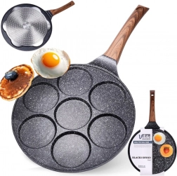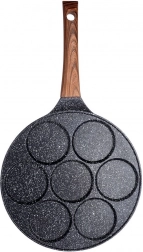 Pregătiți ochiuri perfect rotunde, clătite americane sau mini clătite – această tigaie cu 7 adâncituri vă ușurează orice meniu de mic dejun. Stratul antiaderent din granit în aspect negru-gri „stone” previne arderea și permite o gătire mai sănătoasă cu minimum de ulei. Combinația stilată BLACK&WOOD se potrivește de minune în bucătăriile moderne.