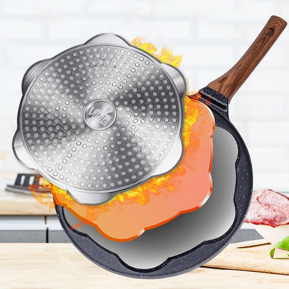 Baza inox pentru inducție asigură distribuția eficientă a căldurii și compatibilitatea cu majoritatea aragazelor.