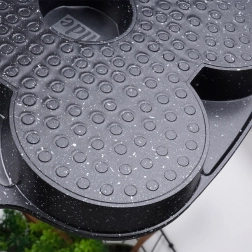 Aduceți confortul zilnic în bucătărie: tigaia din granit BLACK&WOOD cu dimensiunile 19 × 19 cm oferă patru cavități separate pentru porții perfect rotunde. Veți pregăti cu ușurință ouă ochi, clătite pentru mic dejun și mini clătite – rapid, uniform și cu minimum de grăsime datorită tratamentului de suprafață antiaderent.