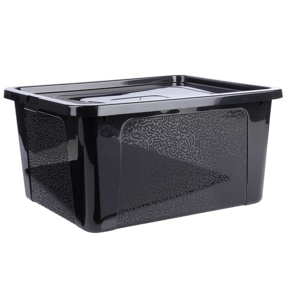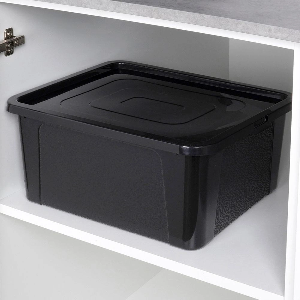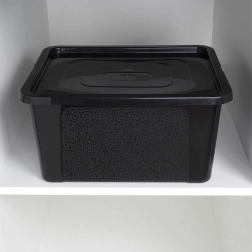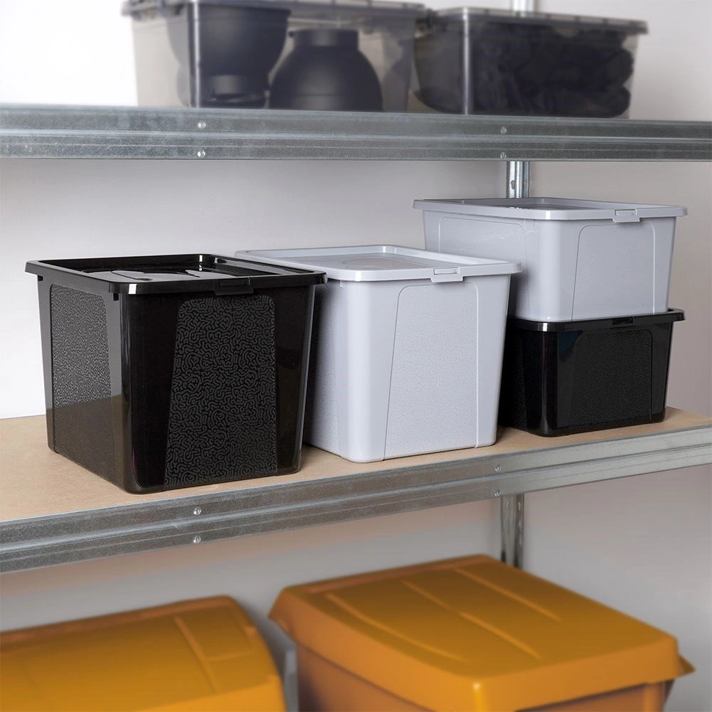 Datorită volumului de 20 l, este potrivită pentru textile, jucării, documente, ustensile de bucătărie și unelte. Este stivuibilă, economisind spațiu în cămară, garaj și birou. Decorul discret de pe laterale oferă un aspect elegant, potrivit pentru interioare moderne.
