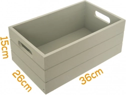 Eleganta lădiță de depozitare din lemn ajută la menținerea ordinii în casă și la birou. Este realizată din lemn rezistent și vopsită în verde pastel deschis, care înveselește raftul, comoda sau biroul. Datorită deschiderilor laterale se transportă confortabil.