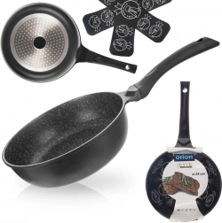 Corpul masiv din aluminiu turnat conduce căldura uniform, scurtează timpul de preparare și economisește energie. Mânerul ergonomic este plăcut la atingere și oferă prindere sigură. Tigaia este potrivită pentru gaz, electric, vitroceramică, halogen și inducție și poate fi spălată în mașina de spălat vase. Pachetul include o protecție pentru depozitare sigură, fără zgâriere a suprafeței.