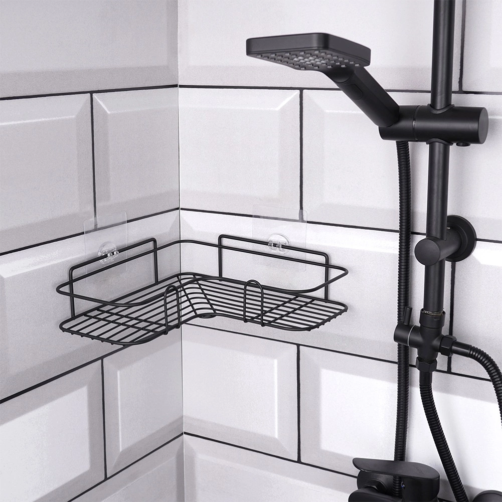 Etajera de colț autoadezivă pentru duș este o soluție excelentă pentru orice baie în stil loft modern. Datorită construcției metalice robuste cu finisaj negru mat vopsit în câmp electrostatic, este solidă, rezistentă și ușor de curățat. Potrivită pentru depozitarea șampoanelor, gelurilor, periuțelor și bureților și poate fi utilizată și în bucătărie ca raft pentru condimente. Sunt incluse suporturi autoadezive transparente pentru o instalare rapidă fără a deteriora faianța.