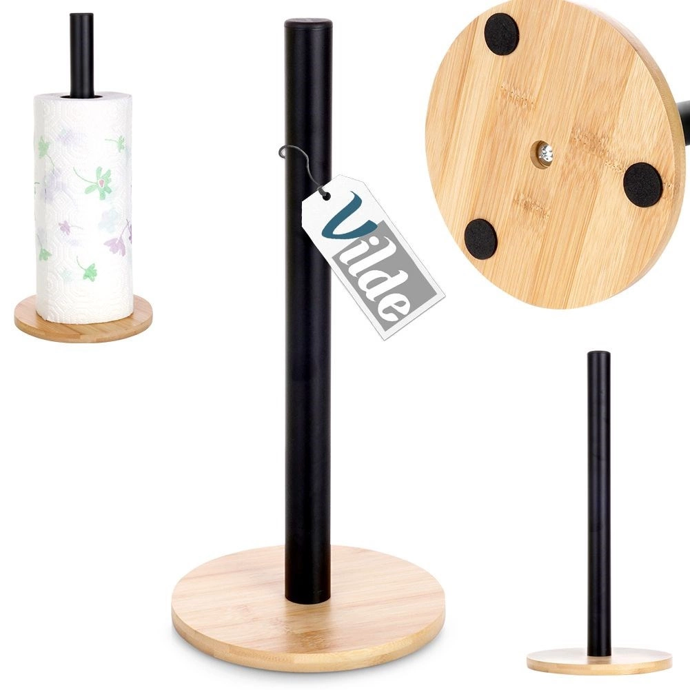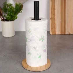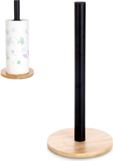 Acest suport pentru prosoape de hârtie ușurează curățenia și gătitul zilnic. Combinația de oțel negru mat și lemn de bambus asigură durabilitate, stabilitate și un aspect atemporal, potrivit atât interioarelor clasice, cât și celor moderne. Dimensiunea universală se potrivește rolilor standard și mai lungi și permite ruperea rapidă și comodă a foilor individuale.
